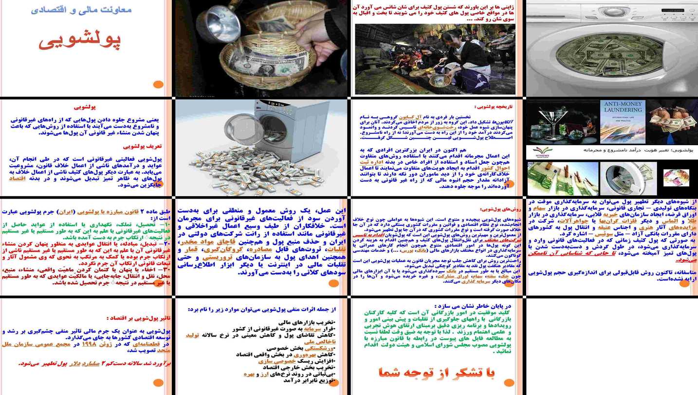 دانلود پاورپوینت پولشویی تعریف، تاریخچه، روش‌ها، تاثیرات اقتصادی و قوانین مبارزه با آن در